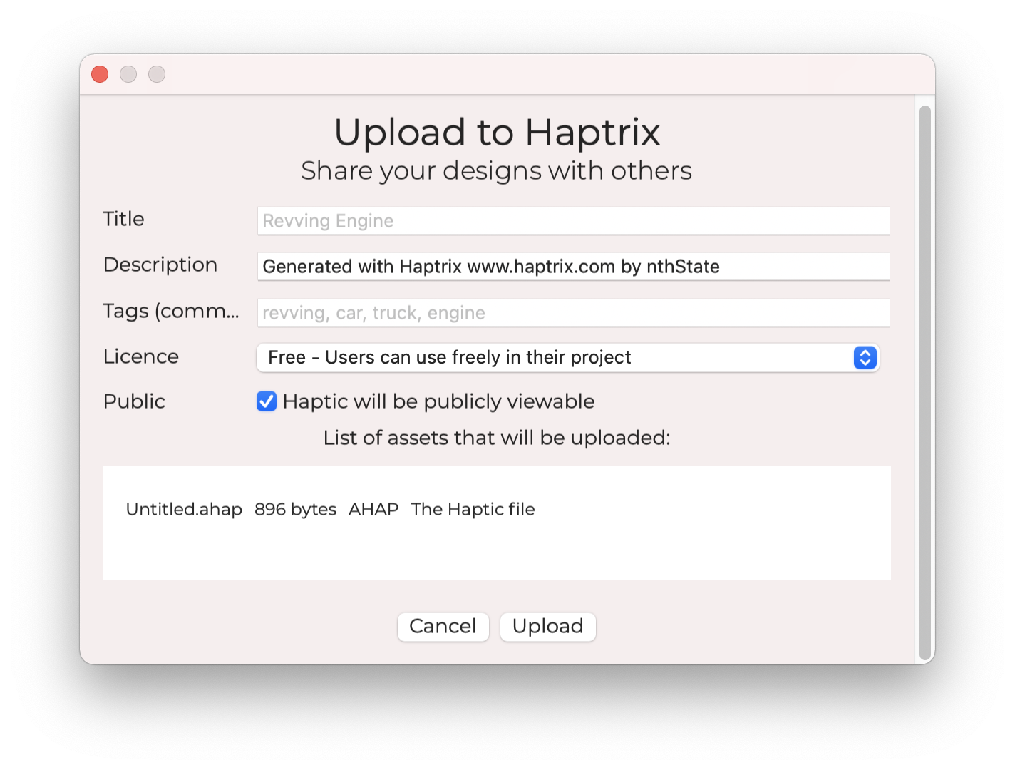 Haptrix gathers up all assets that will be uploaded, check these assets are correct before you upload them.